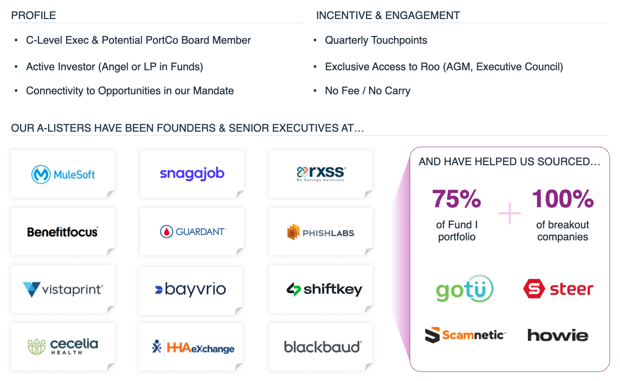 Our A-Lister network—comprised of current and former C-suite executives—actively sources high-signal deals and is available to provide deep-dive diligence insights, ensuring we invest in the best opportunities.